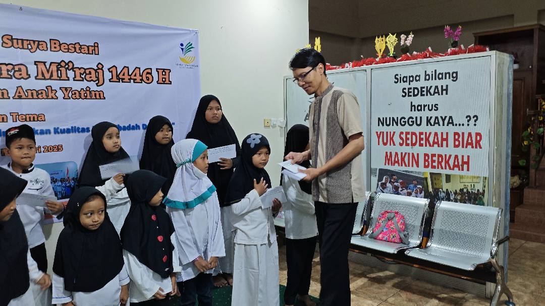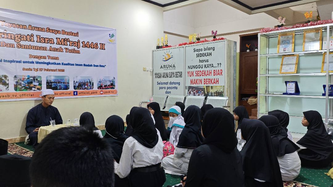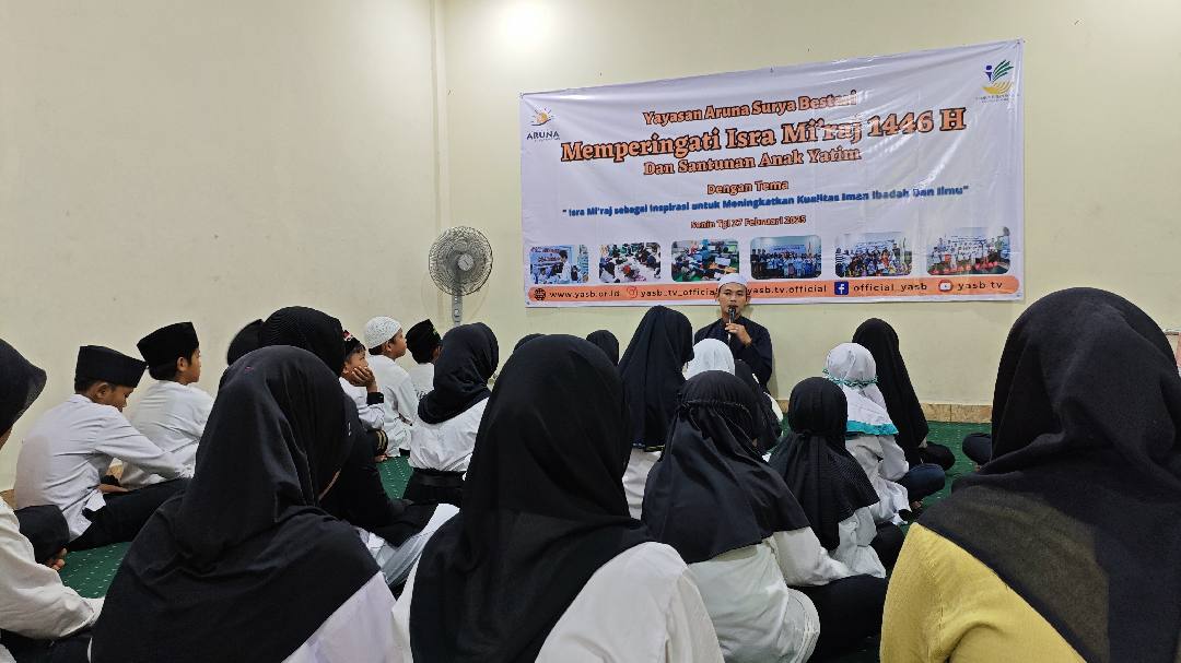 Senin, 27 Januari 2025, Yayasan Aruna Surya Bestari di Pamulang mengadakan peringatan Isra Mi'raj bersama anak-anak binaan. Acara yang penuh khidmat ini dimulai dengan pembacaan ayat suci Al-Qur'an dan tausiyah mengenai makna serta hikmah peristiwa Isra Mi'raj.